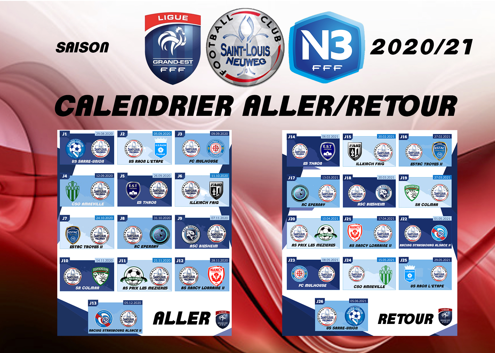 Voilà c’est officiel, le calendrier de N3 LGEF vient de sortir. Les Reds iront à Sarre-Union pour leur première rencontre de la saison