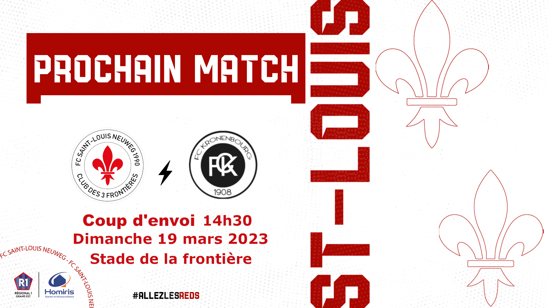 ⚜️EQUIPE FANION⚜️ ⚜️EQUIPE FANION⚜️   Venez assister au match pour la 17 ème journée de championnat contre Kronenbourg ce dimanche 19 mars 2023 – 14H30 au stade de la frontière !   ⚔️ MATCH CHAMPIONNAT 🆚 Kronenbourg 🕒Dimanche 19 mars 2023 – 14H30 📍Stade de la frontière   #AllezlesReds⚜