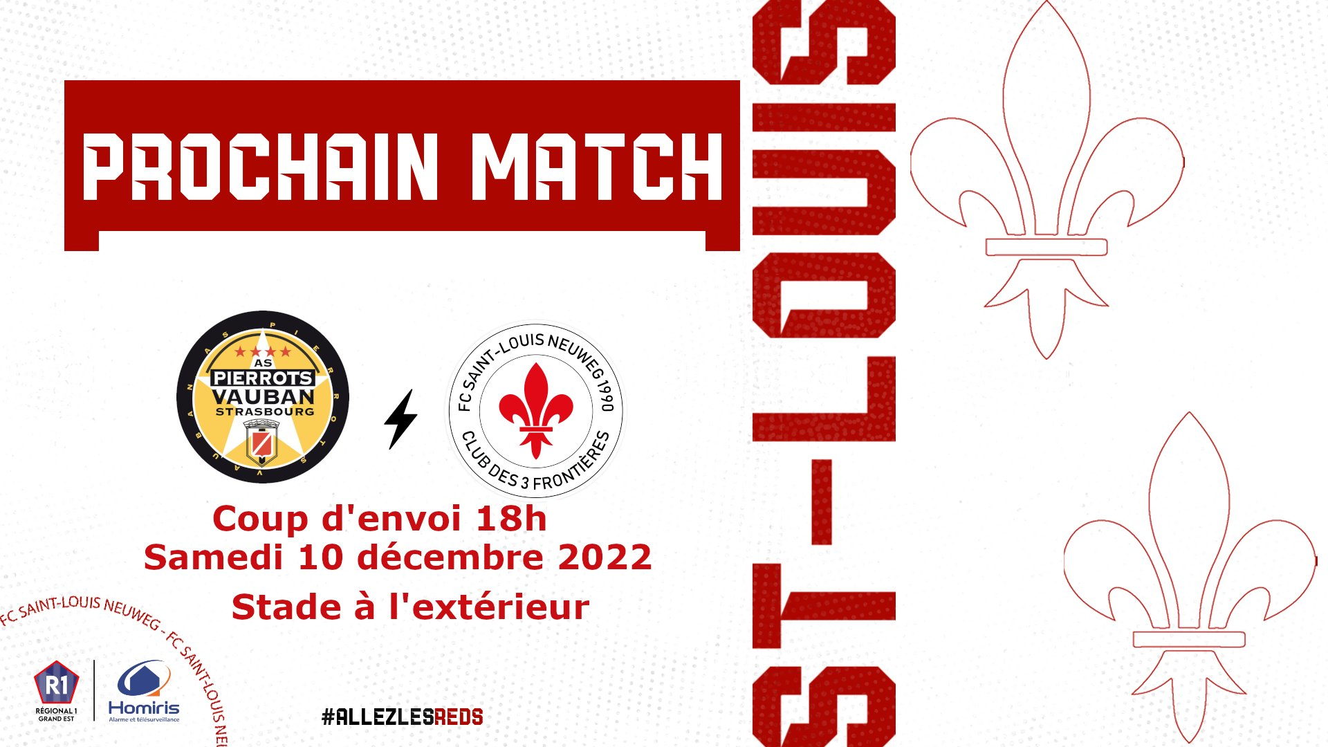 ⚜️EQUIPE FANION⚜️   Les reds se déplacent pour cette 12 ème journée pour défier STRG PIERROTS VAUBAN  !   ⚔️ MATCH CHAMPIONNAT 🆚 STRG PIERROTS VAUBAN 🕒Samedi 10 décembre 2022 – 18h 📍Stade extérieur   #AllezlesReds⚜