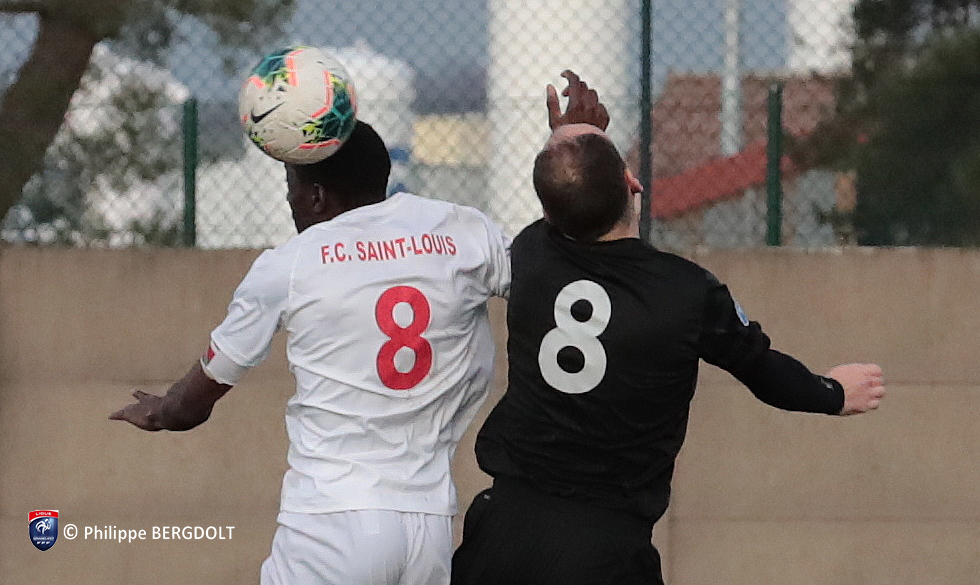 Par arrêté préfectoral, la rencontre entre les Reds de Saint-Louis/Neuweg (blanc) et la FAIG (noir) s’est déroulée à huis clos.