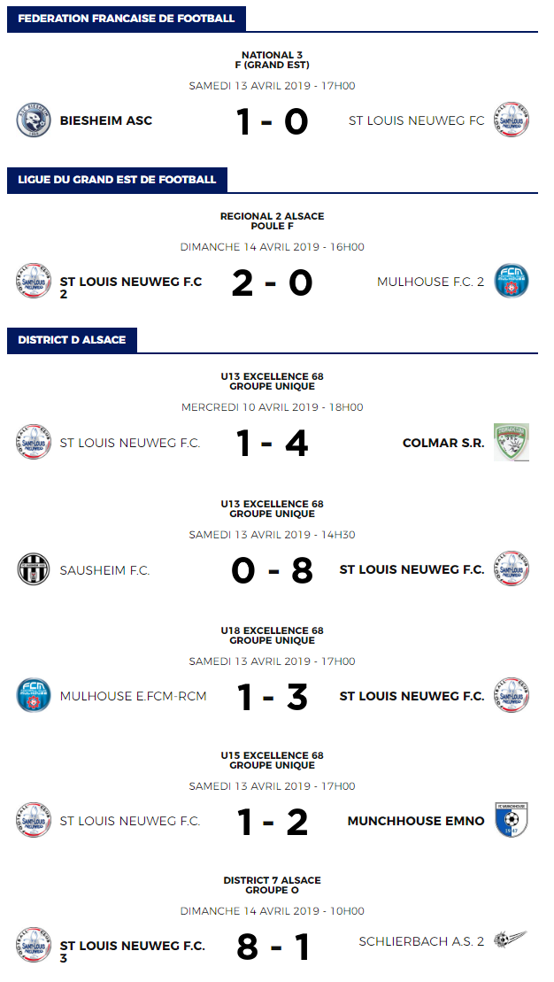 Découvrez les résultats du week-end concernant nos équipes de jeunes, séniors et féminines.